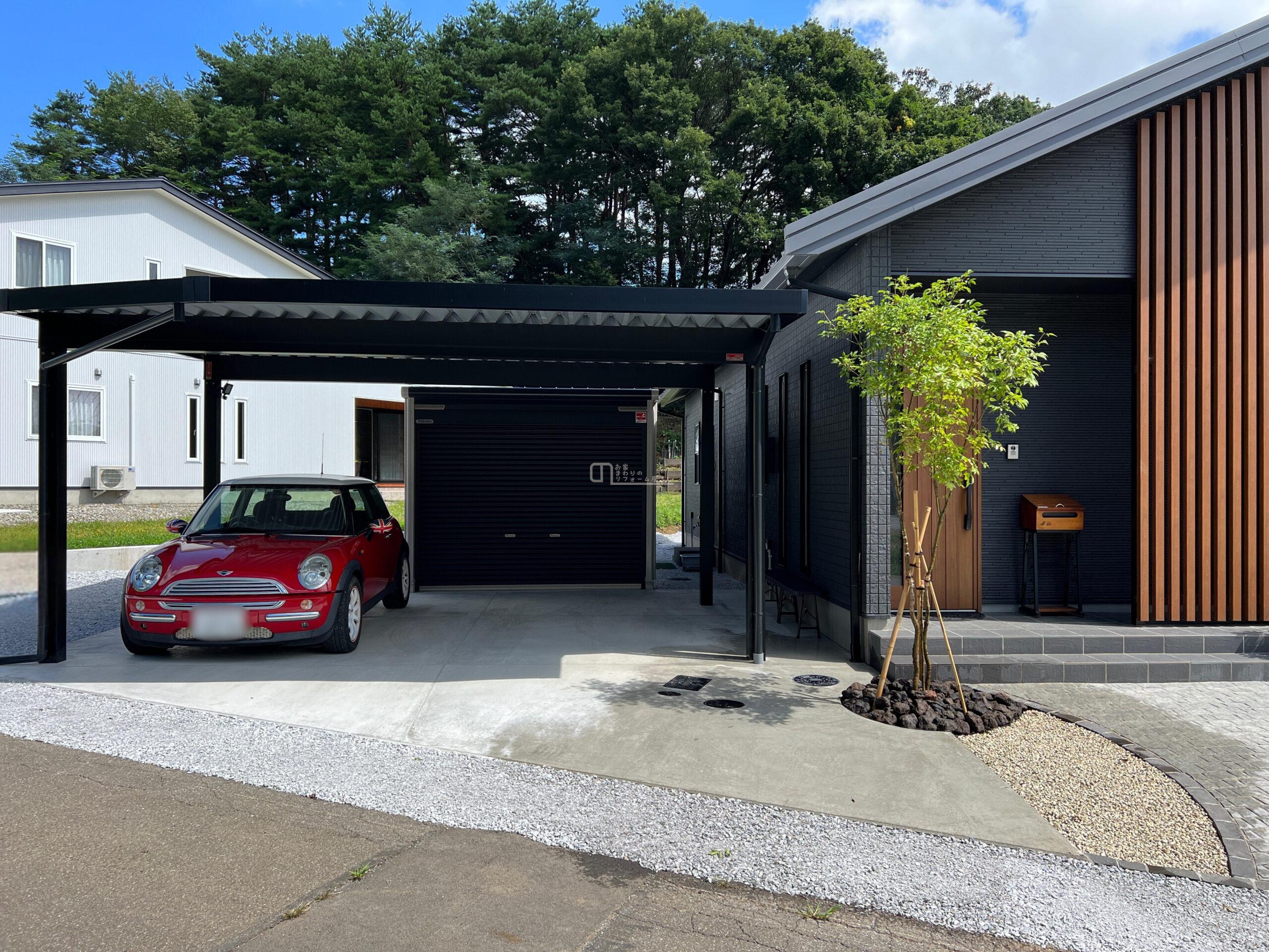 ご来店いただいた時に見えるお車がとても印象的でした。 大切なお車を守る素敵でかっこいい駐車スペース、ガレージが出来上がりました。 お出かけすることも、ご自宅へ帰ることも楽しみになるお家まわりになりました。