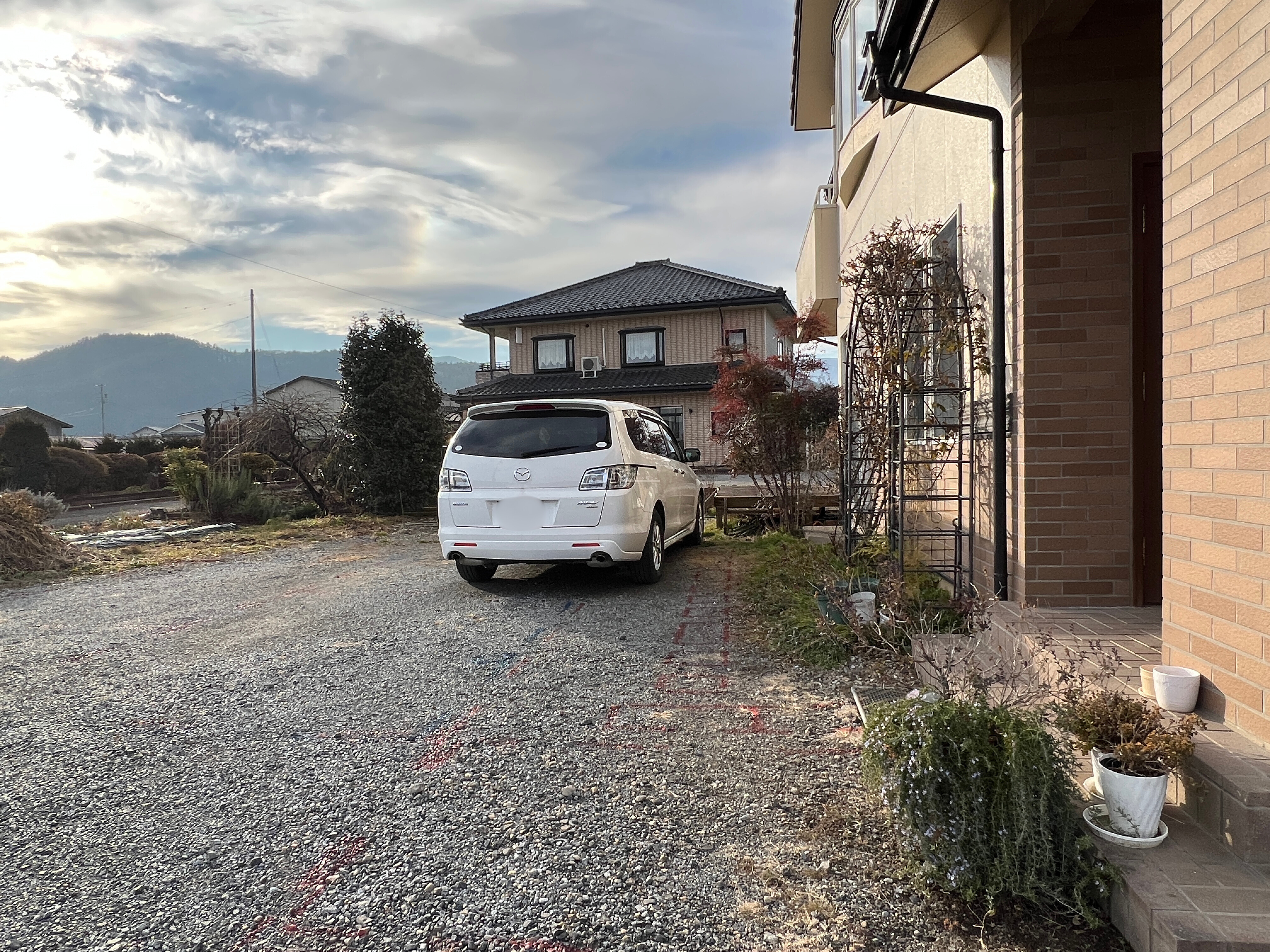 カーポートは3台用の折半屋根のカーポートです。暖冬となって雪は少なくなってきましたが、時折降る大雪やフロントに霜が降りてくる…そんな心配がなくなります。