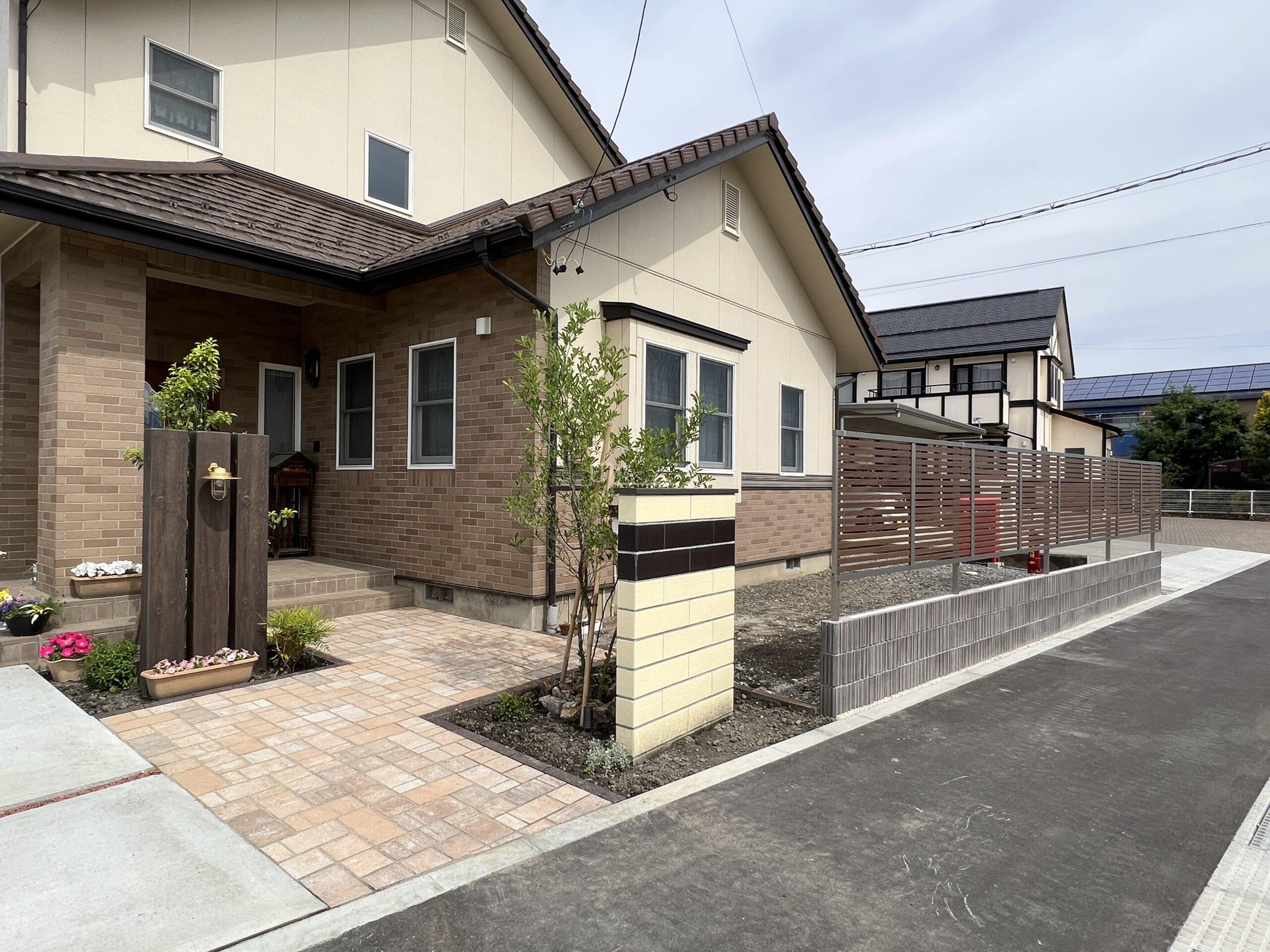 エントランスはインターロッキング敷と、クランク下部分には花壇スペースを設置しました。