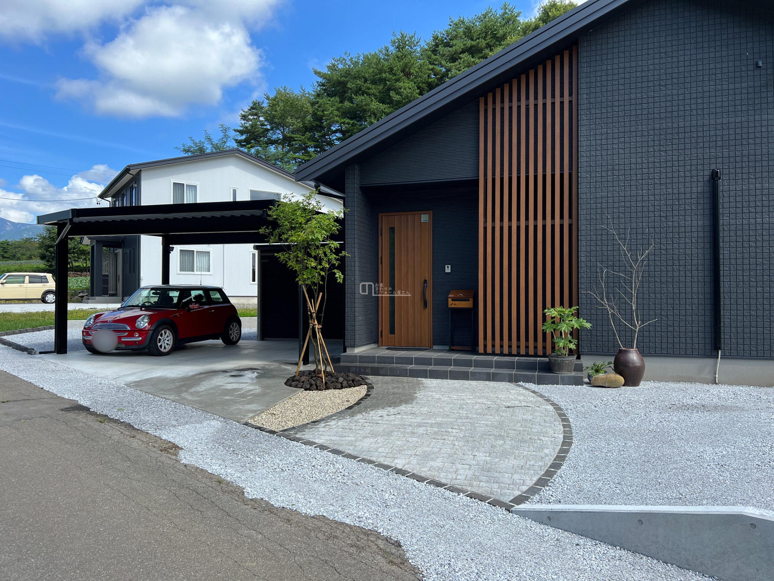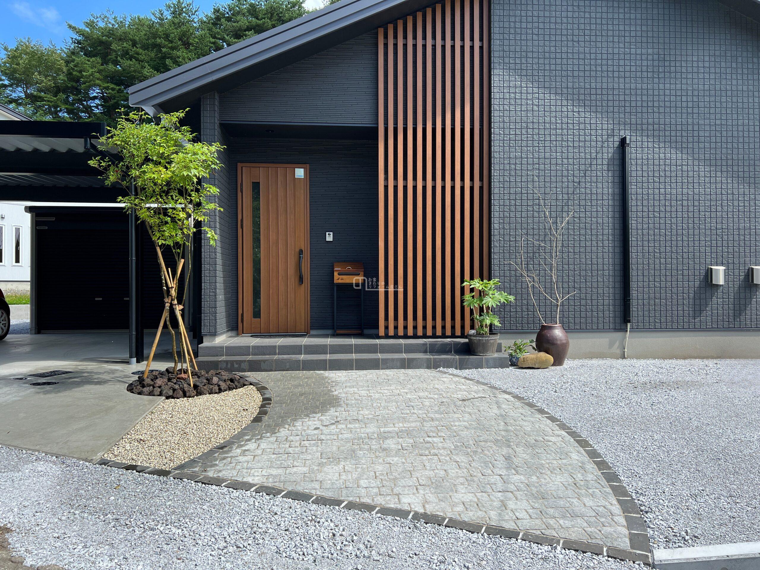 アプローチ部分はお車も乗っていただける『インターロッキングブロック』を使用しました。